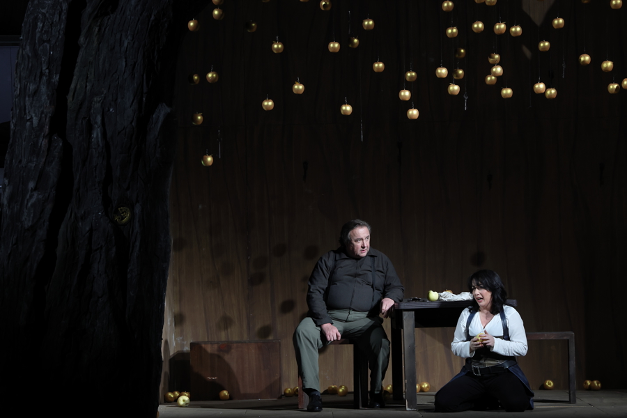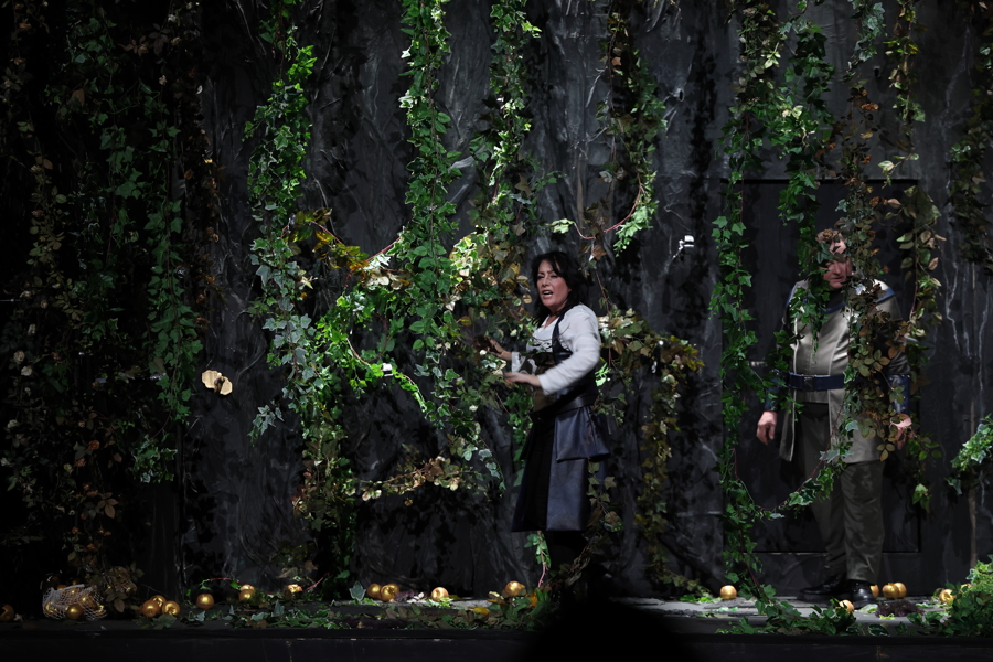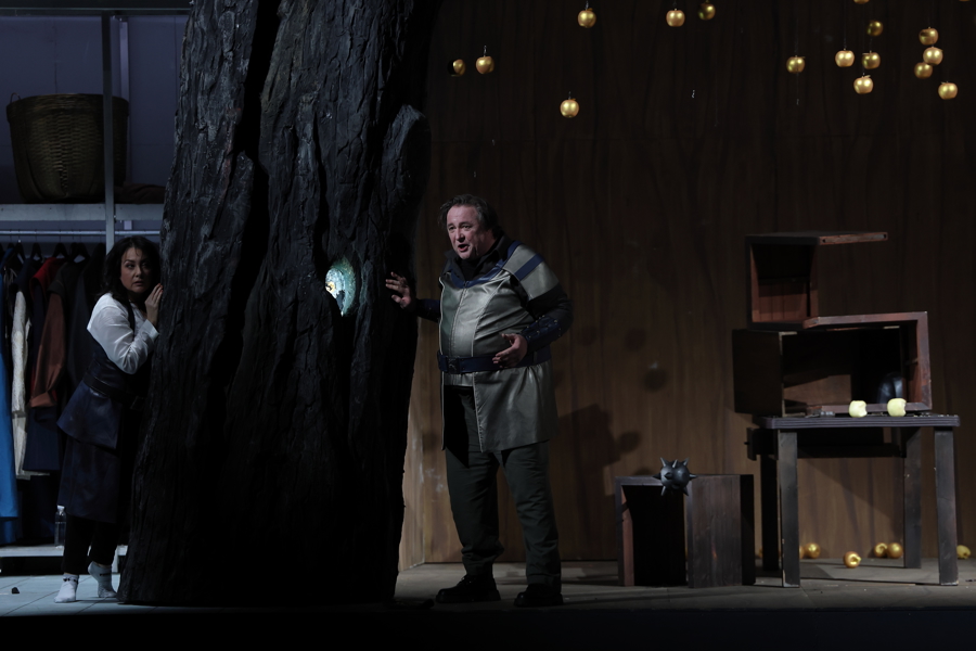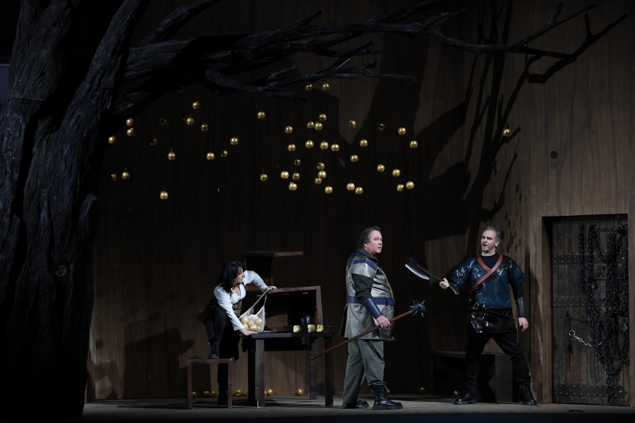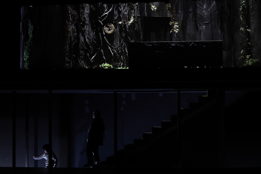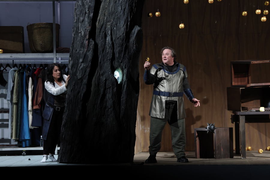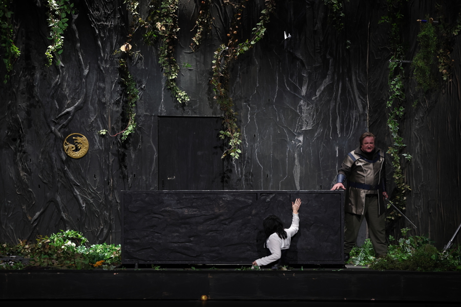 在卡塔琳娜·瓦格纳的导演思路中,本次制作的主线之一是“通关挑战”,为争夺指环的挑战者不断“上难度”,在神秘感与沉浸感之间,构建一场别具野心的瓦格纳式冒险。舞台上处处暗藏着《指环》其他三部剧的戏剧线索,神、人和侏儒三界对权力的争夺,都能在《女武神》舞台找到对应的符号。