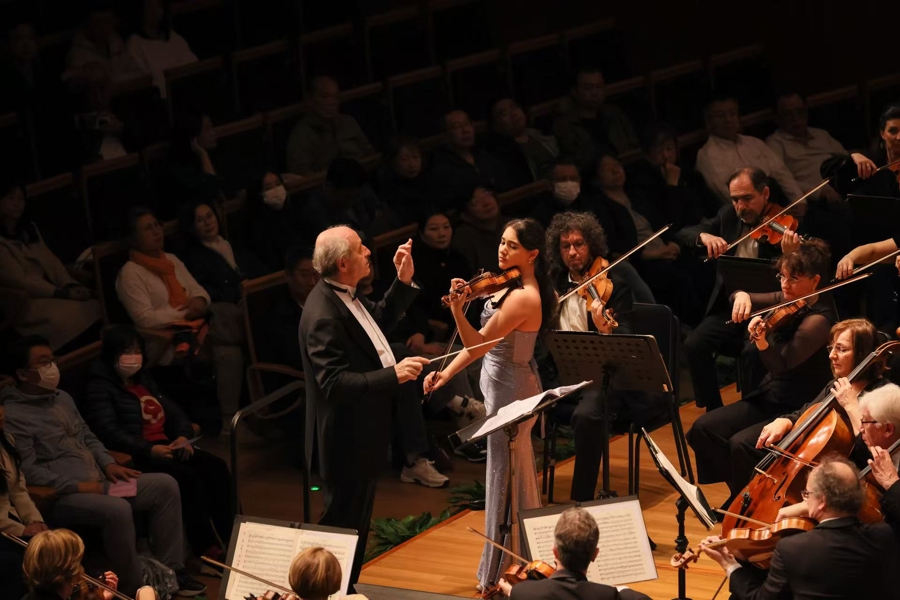 作为第41届“上海之春”国际音乐节参演节目,本场音乐会精心挑选三首经典作品,涵盖组曲、协奏曲、交响曲三种不同体裁,展现普罗科菲耶夫的先锋与深邃,门德尔松的浪漫与诗意。音乐会以普罗科菲耶夫《三个橘子的爱情》组曲中的经典选段开篇。这部作品源自同名歌剧,伊万·费舍尔与乐团从中精选三段极具代表性的音乐,在灵动旋律、鲜明节奏与丰富配器中,勾勒出剧中奇幻生动的音乐形象,既有戏剧张力,又饱含浪漫色彩。阿米拉·阿布扎哈拉携手乐团带来的是门德尔松《E小调小提琴协奏曲》。这部作品是门德尔松创作生涯的巅峰之作,也是浪漫主义小提琴协奏曲的经典范本。阿米拉·阿布扎哈拉与布达佩斯节日管弦乐团默契配合,呈现出诗意的浪漫幻想与蓬勃的生命力量。