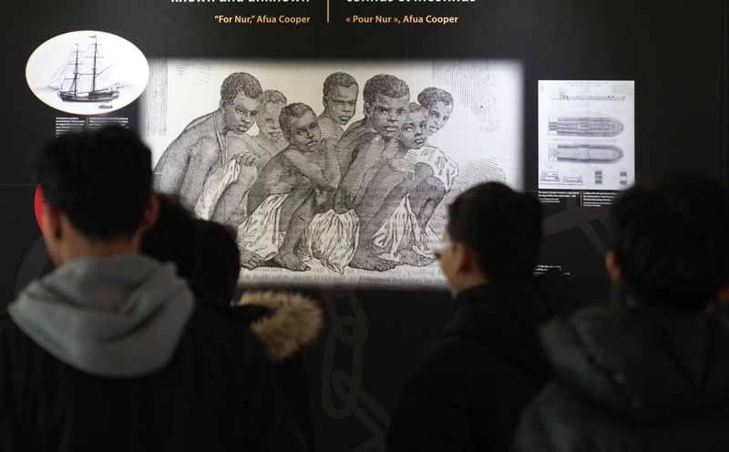 3月25日,在位于纽约的联合国总部,人们参观纪念奴隶制和跨大西洋贩卖奴隶行为受害者历史展览。 新华社记者 张凤国 摄