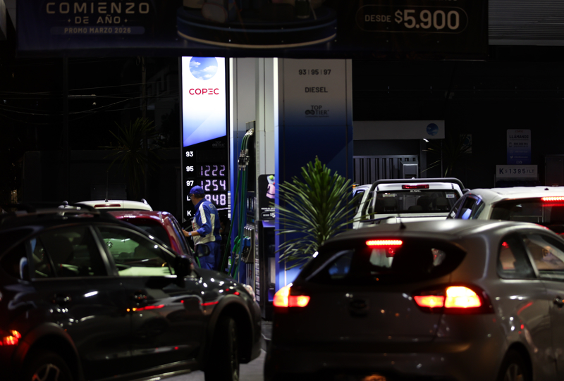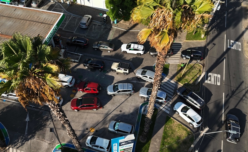 3月25日,车辆在智利圣地亚哥一处加油站排队等待加油。3月26日起,汽油价格每升上涨超370智利比索,涨幅超44%;柴油价格每升上涨约580智利比索,涨幅超50%。 新华社记者 周佳谊 摄
